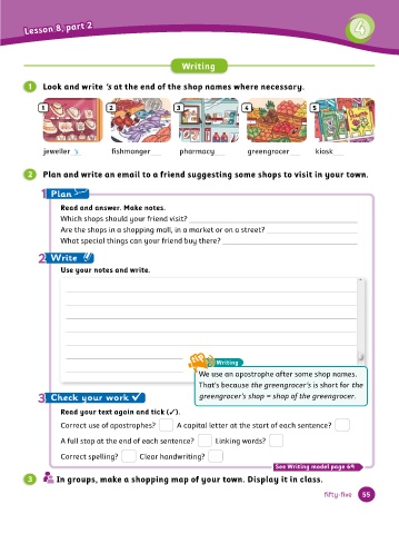 4 To put some clothes or shoes on to check S 2 Plan and write an email to a friend suggesting some shops to visit in your town.