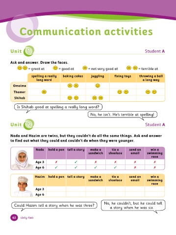 Nada and Hazim are twins, but they couldn’t do all the same things. Ask and answer