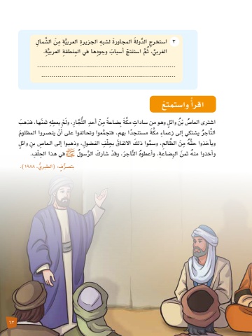 ال�ش ِمالََّّ ِة ِ مَنَّ الد َ ولة َ المجاورة ِ ل�شبه ِ الجزيرة العربي3 ا�س ِ تخرجَّ ِة.م ا�س ْ تنتج أ�س َ باب ِ وجود ِ ها في الم ِ نطقة العربي، ث َُِّّ الغربي......................................................................................................................................ج ِار َ ، ولْم ِ يعطِه َ ثمن َ ها، فذهب الت َّ مكَة ِ ب�ض ً اعة ِ مْن ِ أحد َُّّن ٍ وائل وهو من �س ِ اداتُْص بُا�شترى العا�ْن ين�ص َ روا المظلومَ مكَة م�س ً تنجد َّ ا بهم، فتجمعوا وتحالفوا على أََّّ الت ُ اجر ي�شتكي ِ إلى زعماءم َ وا ذلك اال َ تفاق ِ بحْل ِف الف�ض ِول، وذهبوا إلى الـعا�ِص ِ بن ٍ وائل الظ ِ الم، و�سََّّه ِ مَنَّ أخذوا حقُويول m ِ في هذا الحْل ِف. ُ أعطوه َّ الت َ اجر ْ ، وقد َ �شارك َّ الر�س ُُ أخذوا منه َ ثمن ِ الب�ض ِ اعة، وور ٍف ُّ : )الطبري، 1988.)بت�صُّْ ْ وا�ستمتعاقرأ63