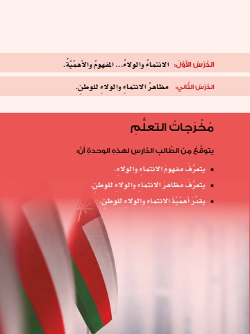 َو ُ طني ع 87ُ مان ٌ ... انتماء ٌ ووالءة.ُي... املفهوم ِّ والأهمَُّءَّ الدْر ُس َ األ َّو ُل: اال ُ نتماء والوالُُ مظاهر اال ِ نتماء والوالِء ِ للوطن.َّاني:َّ الدْر ُس الثَ ْن:َّ يتوق ُع ِ م َن َّ الط ِ الب َّ الد ِ ارس ِ لهذه ِ الوحدة أيتعر َف َ مفهوم اال ِ نتماء والوالِء.َّnيتعر َف َ مظاهر اال ِ نتماء والوالِء ِ للوطن.َّnيَة اال ِ نتماء والوالِء ِ للوطن.ِّ أهمَّيقدَرِّn التعل ِمُُّم ْخَر ُ جات