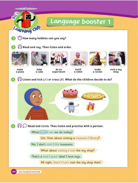 4 LC1.3 Read and circle. Then listen and practise with a partner.