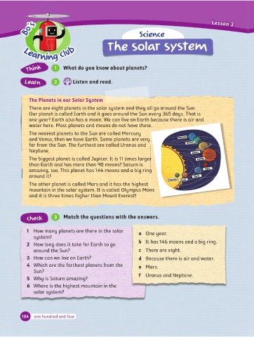Learning Club The solar system