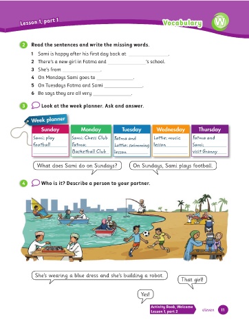 3 Look at the week planner. Ask and answer.