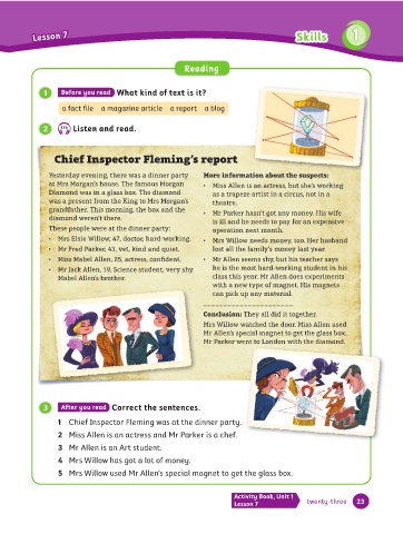 2 Miss Allen is an actress and Mr Parker is a chef.