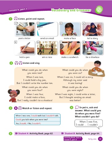 5 Student A: Activity Book, page 62. Student B: Activity Book, page 64.