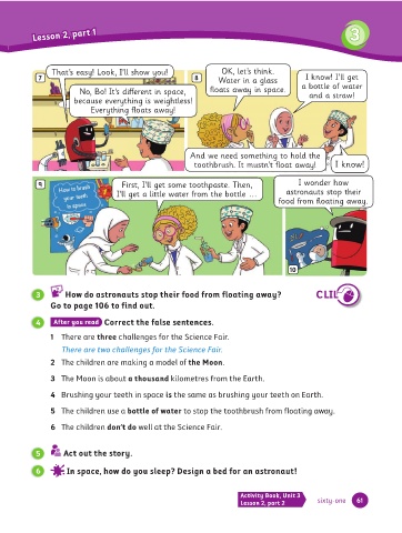 No, Bo! It’s di erent in space, loats away in space. a bottle o water