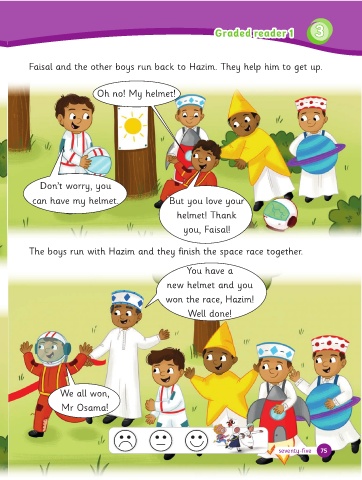 The boys run with Hazim and they inish the space race together.