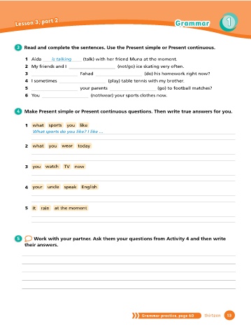 3 Read and complete the sentences. Use the Present simple or Present continuous.