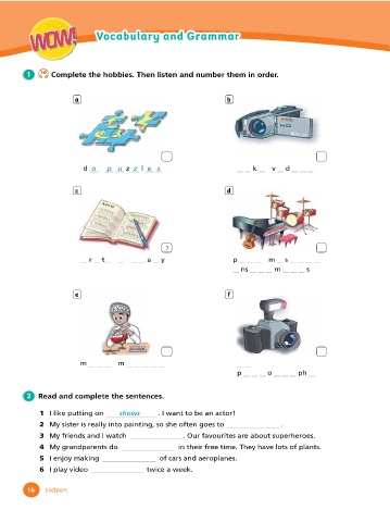 1 1.12 Complete the hobbies. Then listen and number them in order.