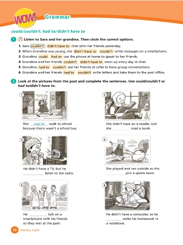 1 2.8 Listen to Sara and her grandma. Then circle the correct options.