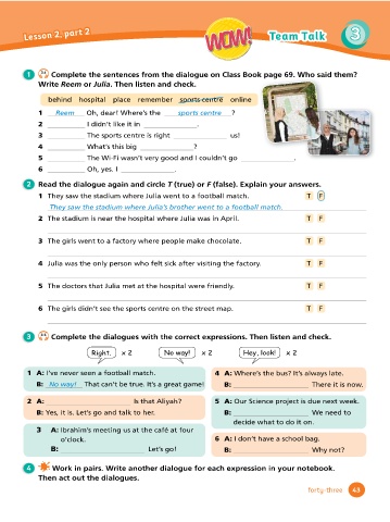 1 3.4 Complete the sentences from the dialogue on Class Book page 69. Who said them?