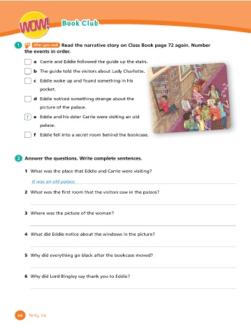 1 After you read Read the narrative story on Class Book page 72 again. Number