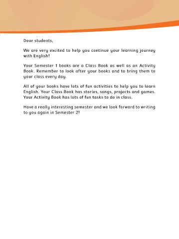 Your Semester 1 books are a Class Book as well as an Activity