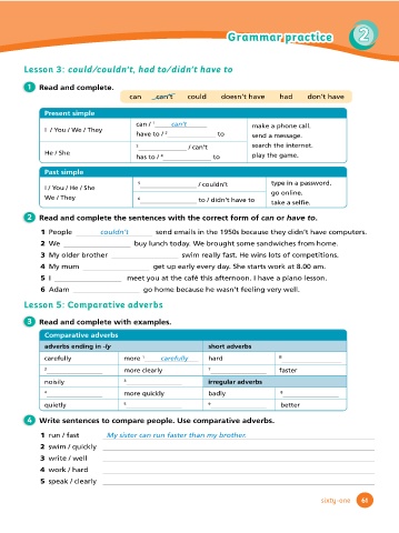 L e s s on 3: c ould/ c ouldn 't, had to /didn ’t hav e to