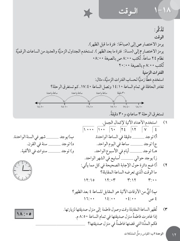 __________________________________________ ؟اعم دحلأاو تبسلا يموي ةءارقلا يف ىده اهتضق يتلا ةَّدملا مك .ةدحاولا ةنسلا يف رهش ___________ دجوي )ب .ةدحاولا ةعاسلا يف ةقيقد ___________ دجوت )أ