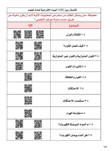 مولعلا ةدامل ةيئارثإلا داوملا )QR( زومر ةمئاق مولعلا ةدامل ةيئارثإلا داوملا ) QR ( زومر ةمئاق