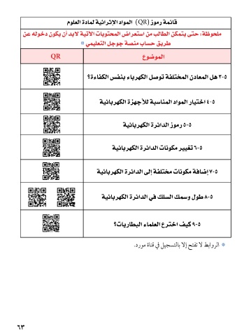 مولعلا ةدامل ةيئارثإلا داوملا ) QR ( زومر ةمئاق مولعلا ةدامل ةيئارثإلا داوملا )QR( زومر ةمئاق