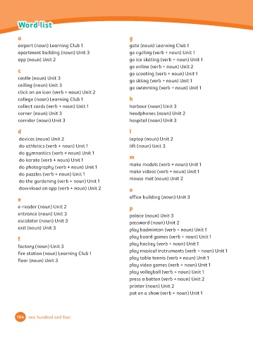 app (noun) Unit 2 go ice skating (verb + noun) Unit 1