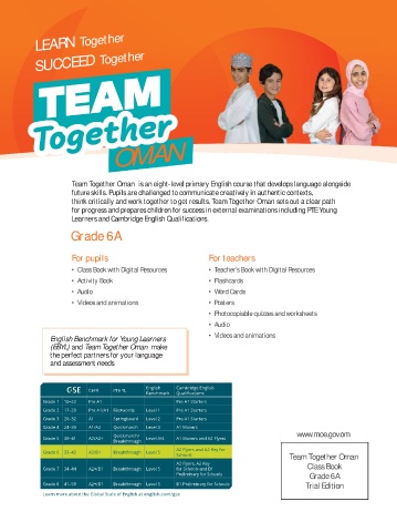 Team Together Oman is an eight-level primary English course that develops language alongside