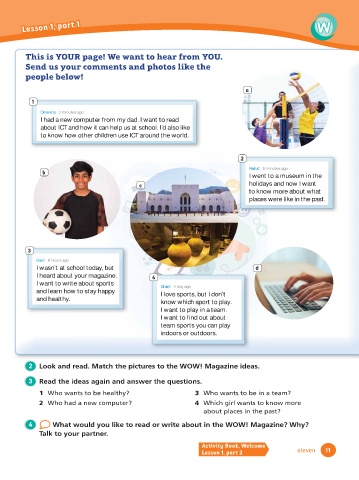 2 Look and read. Match the pictures to the WOW! Magazine ideas.