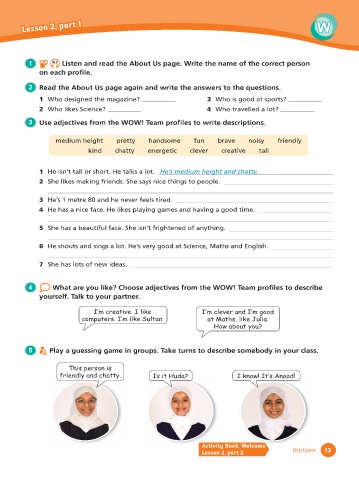 3 Use adjectives from the WOW! Team profi les to write descriptions.