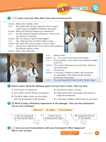 1 2.3 Listen and read. Why didn’t Arlo send his homework?