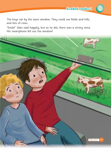 Graded r eader 1 2 2 Graded reader 1 The boys sat by the open window. They could see ields and hills, and lots o cows. ‘Smile!’ Ja e said happily, but as he did, there was a strong wind. His smartphone ell out the window! fifty-nine 59