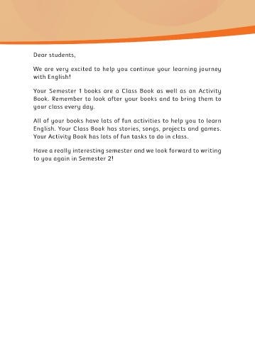 Your Semester 1 books are a Class Book as well as an Activity