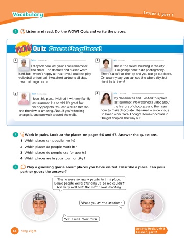 3 3.2 Listen and read. Do the WOW! Quiz and write the places.