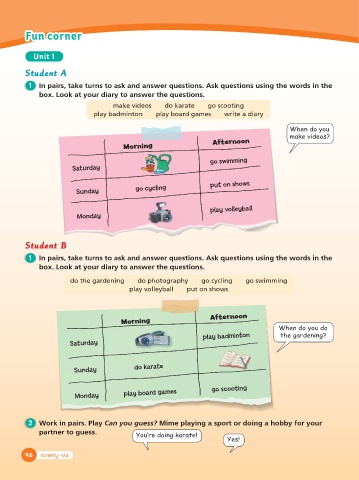 2 Work in pairs. Play Can you guess? Mime playing a sport or doing a hobby for your