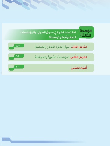 138593101َُلَّ الدْر ُس َ األ َّو ُل: ُ سوق َ الع ِمل ُ : الحاضر ُ والم ْستقبُُ ِّ والمتوسطةَّاني: َّ المؤس ُ سات َّ الصغيرةَّ الدْر ُس الث تعلميُُّ ِّقي ُمأُ االقتصاد ُ الع ُّ ماني ُ : سوق ِ العمل َّ ، والمؤس ُساتَّ الص ُ غيرة ِّ والمتوس ُطةَ الو ْح ُدةُ الثالثة13