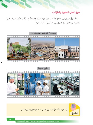 87ُ االقتصاد ُ الع ُّ ماني ُ : سوق ِ العمل َّ والمؤس ُسات َّ الص ُ غيرة ِّ والمتوس ُطةُُوى العاملةالقِ ُ : المفهوم ِّ والمكو ُ ناتُ العملسوقُ ً اهتمام ً ا كبيرا َ ُّ ت الدولُ ْ ؛ لذا أولَّ ُ تي يقوم عليها االقتصادَّ ِة الِ األساسي م َّ ن الركائز العمل ِعد ُ سوق ُِ ُّ يِ، هما:ْنِ َ أساسي من عنصرين العمل ِِ َّ ه، ويتكو ُن ُ سوق ِبتطويرْ استنتج العمل. سوق ِ العمل ْ ، استنتج َ مفهوم ِ سوق ِِ َك ِّ لمكو ِ نات َِ بعد دراستِن ِّ العام ِّوالخاصَّْ مؤس ُ سات َ القطاعي