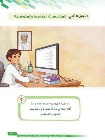 93ُ االقتصاد ُ الع ُّ ماني ُ : سوق ِ العمل َّ والمؤس ُسات َّ الص ُ غيرة ِّ والمتوس ُطةّاني:َّ المؤس ُسات َّ الص ُ غيرة ِّ والمتوس ُطة َّ الد ُ رس الثِِه ّ الص َّ يفيِة ِ بالبحث ْ عنَ ٌ وليد في إجازتاشتغلٍ ِّ ، قد ْم َ بعضُ َ مصدر دخلُر لهٍِّ َ لمشاريع توفأفكارِِه.َ المقتر ِ حات ُ لمساعدت