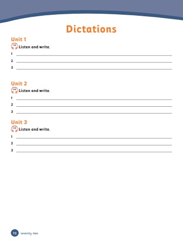 DictationsUnit 11.20 Listen and write.1 2 3 Unit 22.20 Listen and write.1 2 3 Unit 33.20 Listen and write.1 2 3 72 seventy-two