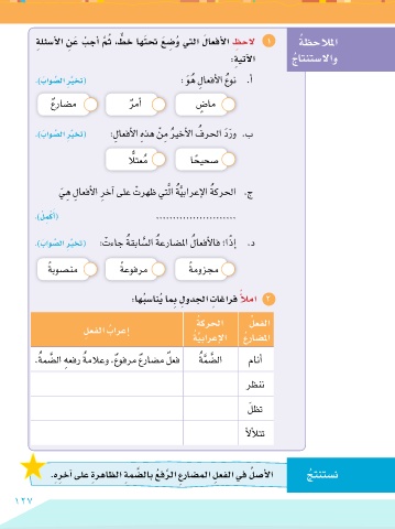 ِةلئض�ألا ِ نَع ْ بجأا َّمث ،طخ اهَتتح َع ِ ض�ُو يتلا لاعفألا ِ ظحل ١ ُةظحلالما