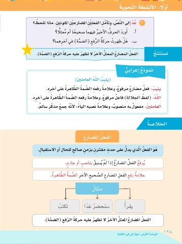 .ِهِرخآا ىلع ُةرهاظلا ةم َّ ض�لا ِهعفر ةملاعو ،ٌعوفرم ٌعراض�م لعف : ُ بيثي