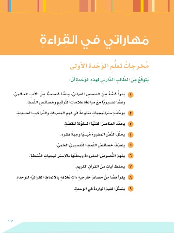 ،يملاـــعلا ِ بدألا َنم ايص�ص�ق اص�نو ،ينآارقلا ِ س�ص�قلا َنم ًةص�ق ارقي 1