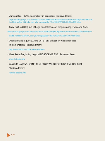 • Y oshihito Isogawa. (2015) The LEGO® MINDST ORMS® EV3 Idea Book guide for reserachers, Research Information Network. Retrieved from: