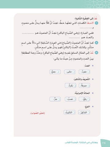 :ىلإ ُ مِسقنَّت بِارعلإا ُ تُاملاعتُاملاع ُ عُ ُ عُفرلافرلا 1 1 .................... وــه َ تِوــعنَّملا َنِأ ُدــجَن ) ِ رــكابلا حِاــبصَّلا يــفوَّ( :ِةٌراــبعلا يــفف.................... وــه َ تِوــعنَّملا َنِأ ُدــجَن ) ِ رــكابلا حِاــبصَّلا يــفوَّ( :ِةٌراــبعلا يــفف