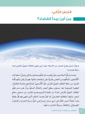لاقن ؟ءاضَّفلا أَدبي َنَيأَ نَ ِ مو ؟ ِ ضَرلأل ُ يِّوجلا ُ فَلاِغلا يهتنَّي َنَيأَ :ٌلِؤُاست راثَّي انَُّه ُ