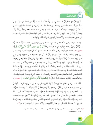 رــيصبلاو ، ِ صــئاقنلا نــع ٌهَّزــنم ، ِ تلااــمكلاب ٌ فوــصوم ىــلاعت َللها َّنأ ٍ لــقع وذ ُ باــتري لا
