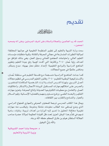 ،ناــمُع ةنطلــس يــف مــيلعتلا ةفــسلف عــم ةمجــسنم ةيــساردلا جــهانملا تءاــج اــمك