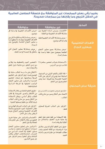 ةقفاوتم ةقفاوتم ريغ دنع عوش�ولماب ةش�الخا حاجنلا يرياعم و .عوش�وم لك ةيادب في ةيميلعتلا فادهلأا
