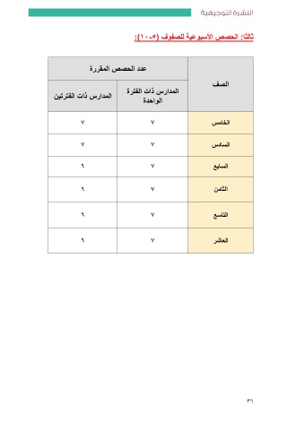 :) 10 ( 5 - فوفصلل ةيعوبس لأا صصحلا :ا ثل اث ةررقملا صصحلا ددع فصلا نيترتف لا تاذ سرادملا ةرتفلا تاذ سرادملا ةدحاولا 7 7 سماخلا 7 7 سداسلا 6 7 عباسلا 6 7 نماثلا 6 7 عساتلا 6 7 رشاعلا 36
