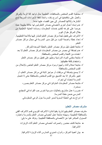 هرابتعاب ةسردملاب ملعتلا رداصم يئاصخأ لمع ةعباتم هتمهمو ،ةيميلعتلا ةظفاحملاب