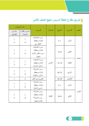 سرادم ةرتفلا سرادم سوردلا تادحولا خيراتلا عوبسلأا رهشلا