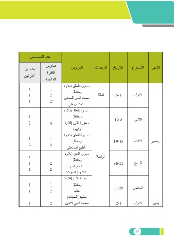 سرادم ةرتفلا سوردلا تادحولا خيراتلا عوبسلأا رهشلا