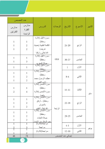 سرادم ةرتفلا سوردلا تادحولا خيراتلا عوبسلأا رهشلا