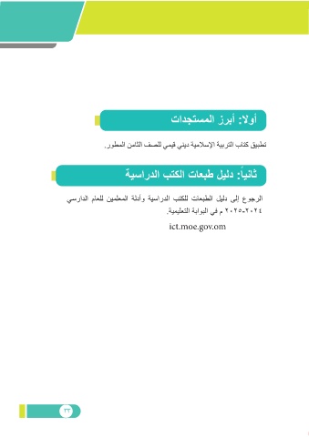 تادجتسملا زربأ :لًاوأ .روطملا نماثلا فصلل يميق ينيد ةيملاسلإا ةيبرتلا باتك قيبطت ً ةيساردلا بتكلا تاعبط ليلد :ايناث يسرادلا ماعلل نيملعملا ةلدأو ةيساردلا بتكلل تاعبطلا ليلد ىلإ عوجرلا .ةيميلعتلا ةباوبلا يف م 2025-2024 ict.moe.gov.om 33