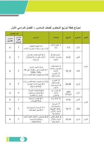 لولأا يساردلا لصفلا – سداسلا فصلل ىوتحملا عيزوت ةطخ جذومن